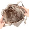 合皮素材の上品な印象に、ジルのワッペンがアクセントの合皮ハンドルタックトート。