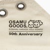 段ボール地をベースに、OSAMU GOODSのロゴやキャラクターをプリントしたレトロなデザインも魅力です。